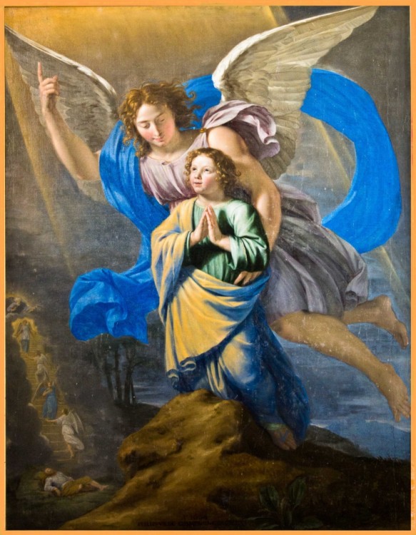 Sur la même toile l’Ange gardien évoque l’archange Raphaël conduisant Tobie, fils de Tobit, dans son voyage en Médie (Tobit 5).