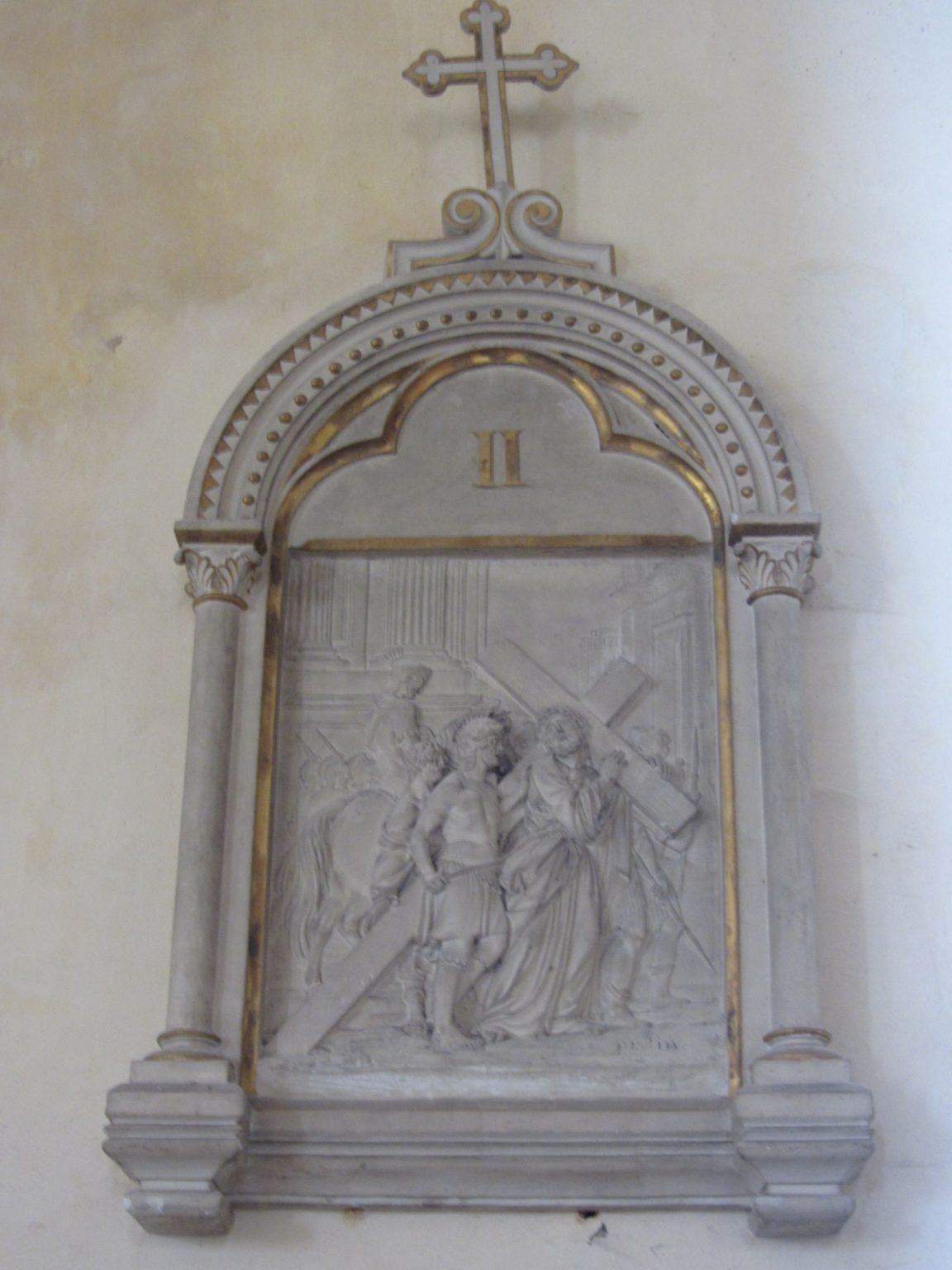 Le chemin de croix court sur le mur des bas-côtés. Il a été érigé en 1867. Il devrait être restauré en 2022.