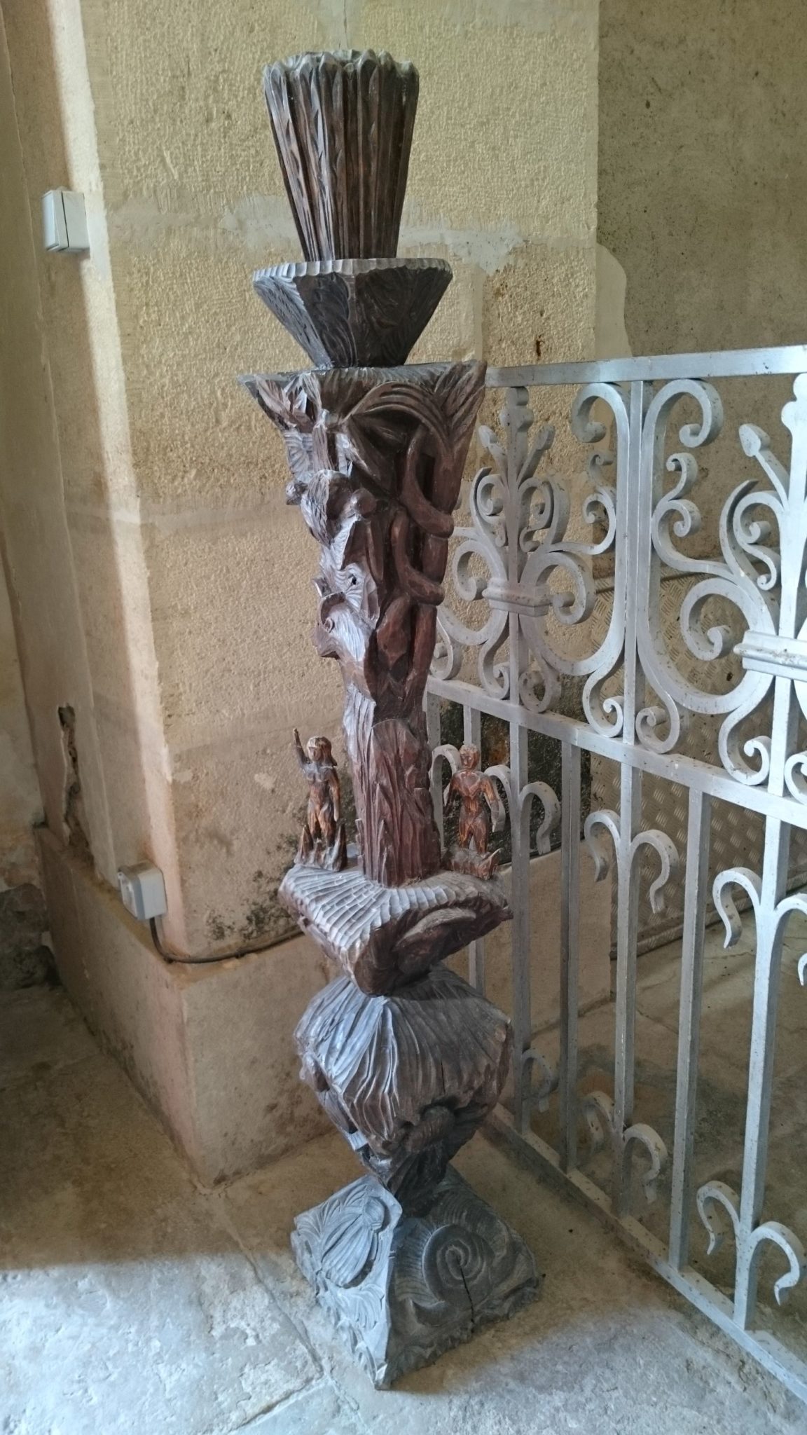 Un support de cierge pascal en bois a été réalisé à la fin des années 1950 par le menuisier Auger, de Forcy. Adam et Eve sont sculptés indépendamment sur un bord.