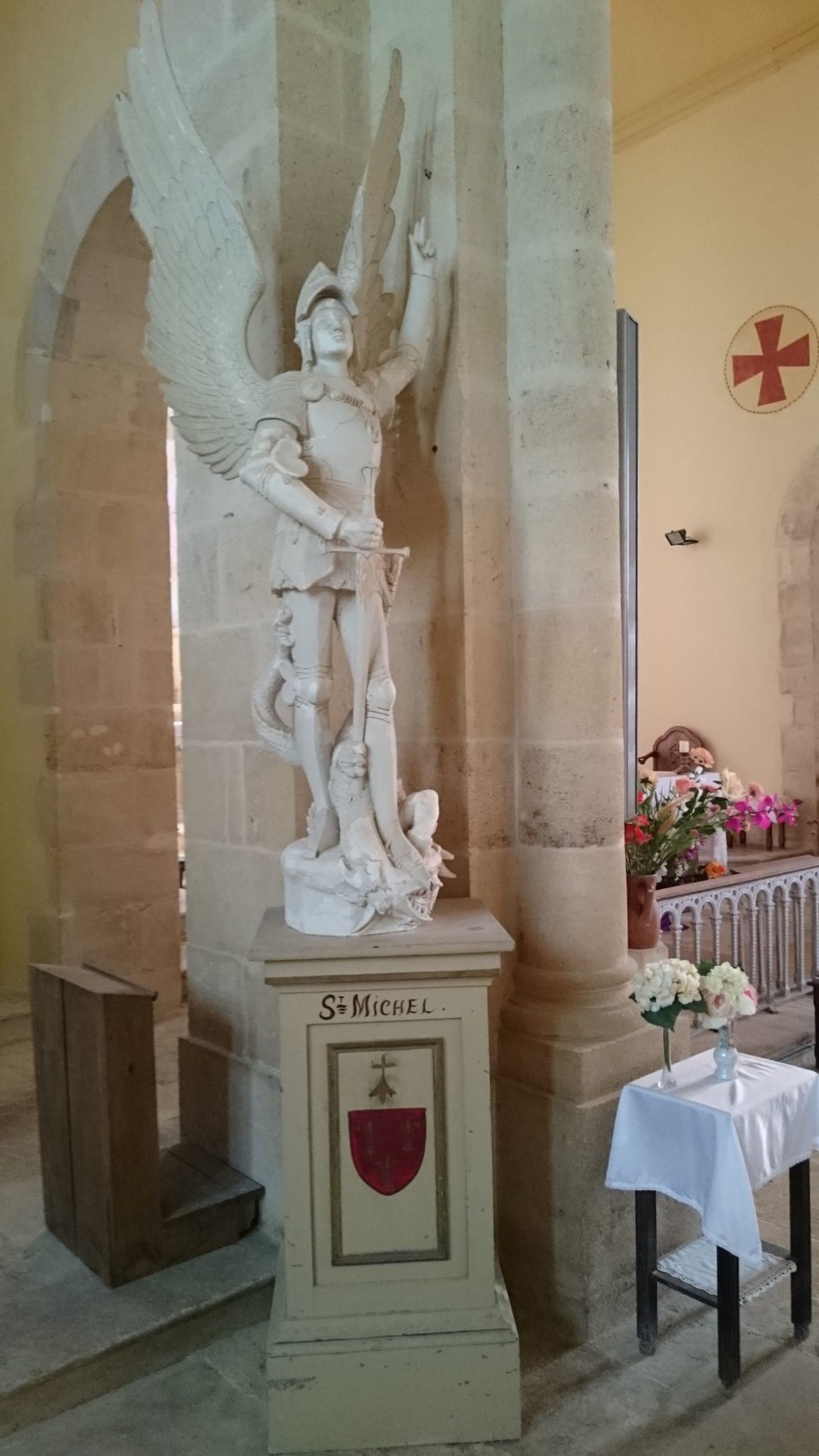 Deux très grandes statues encadrent l’entrée du chœur : à gauche saint Michel et à droite sainte Jeanne d’Arc, patrons de la Nation.