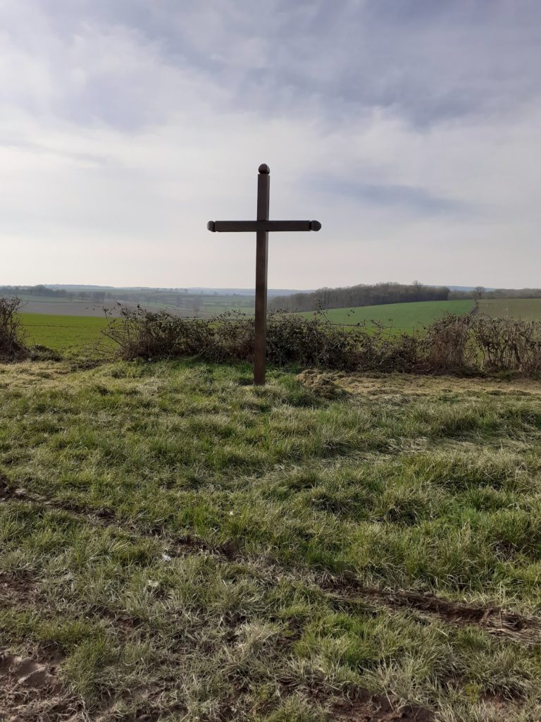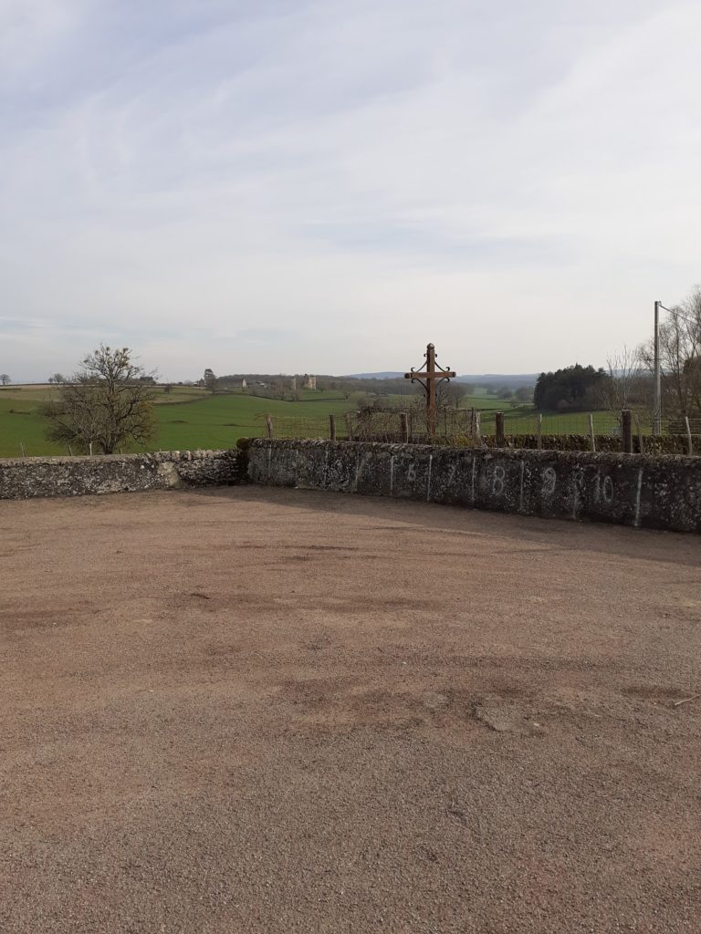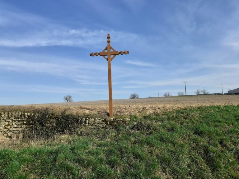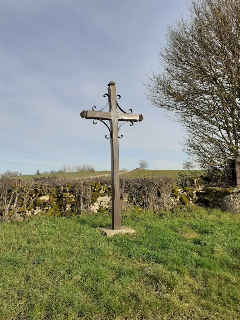 Elle se dresse au pied du lavoir, à l’intersection du chemin de terre qui menait à l’église et de la route qui mène au village.