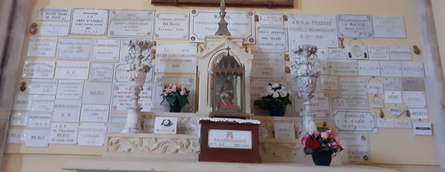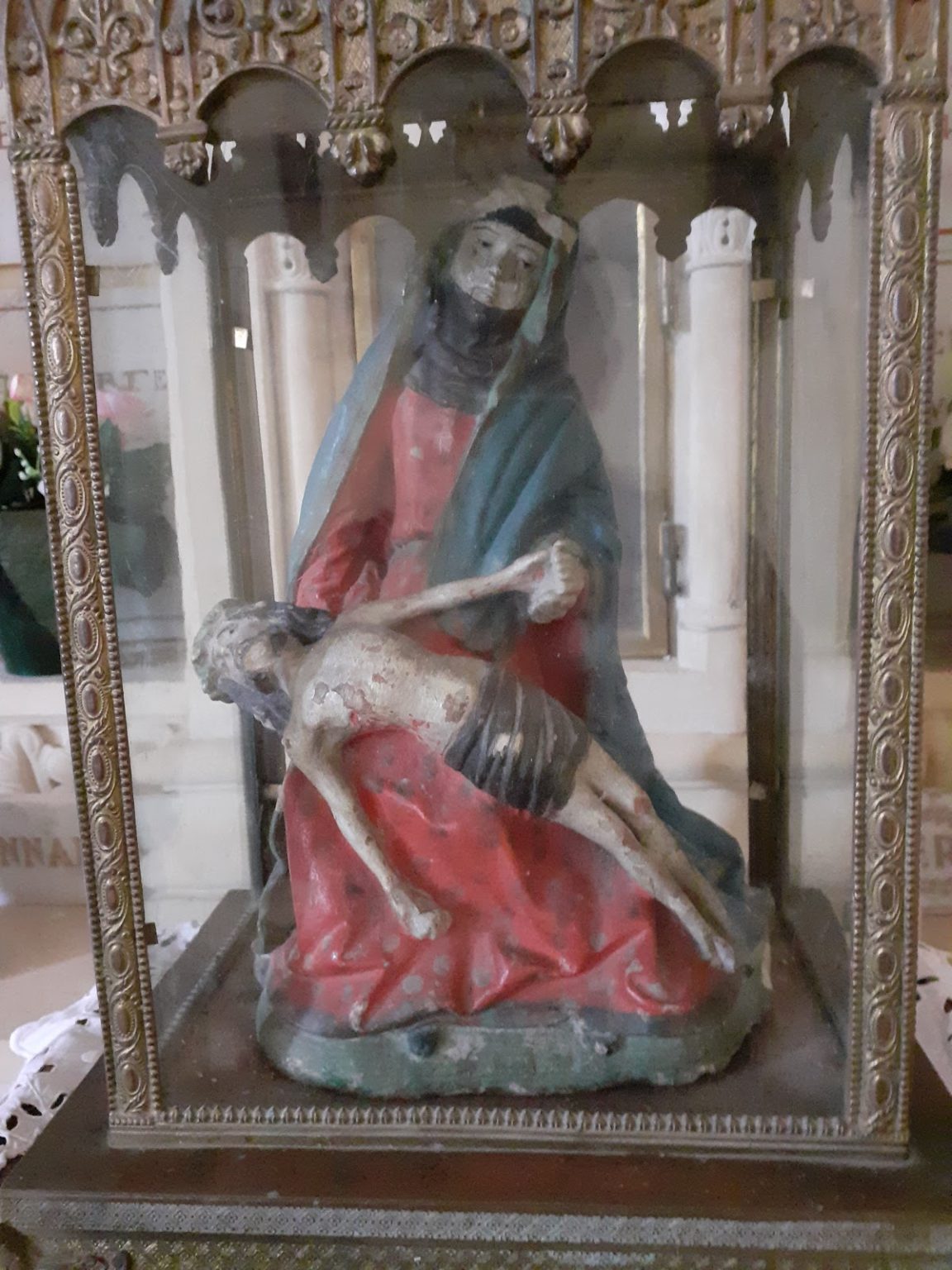 La statue de la Pietà, dans sa châsse, est entourée de nombreux ex-voto qui sont de fervents témoignages de reconnaissance à la Vierge, liés notamment à la guerre de 14-18.